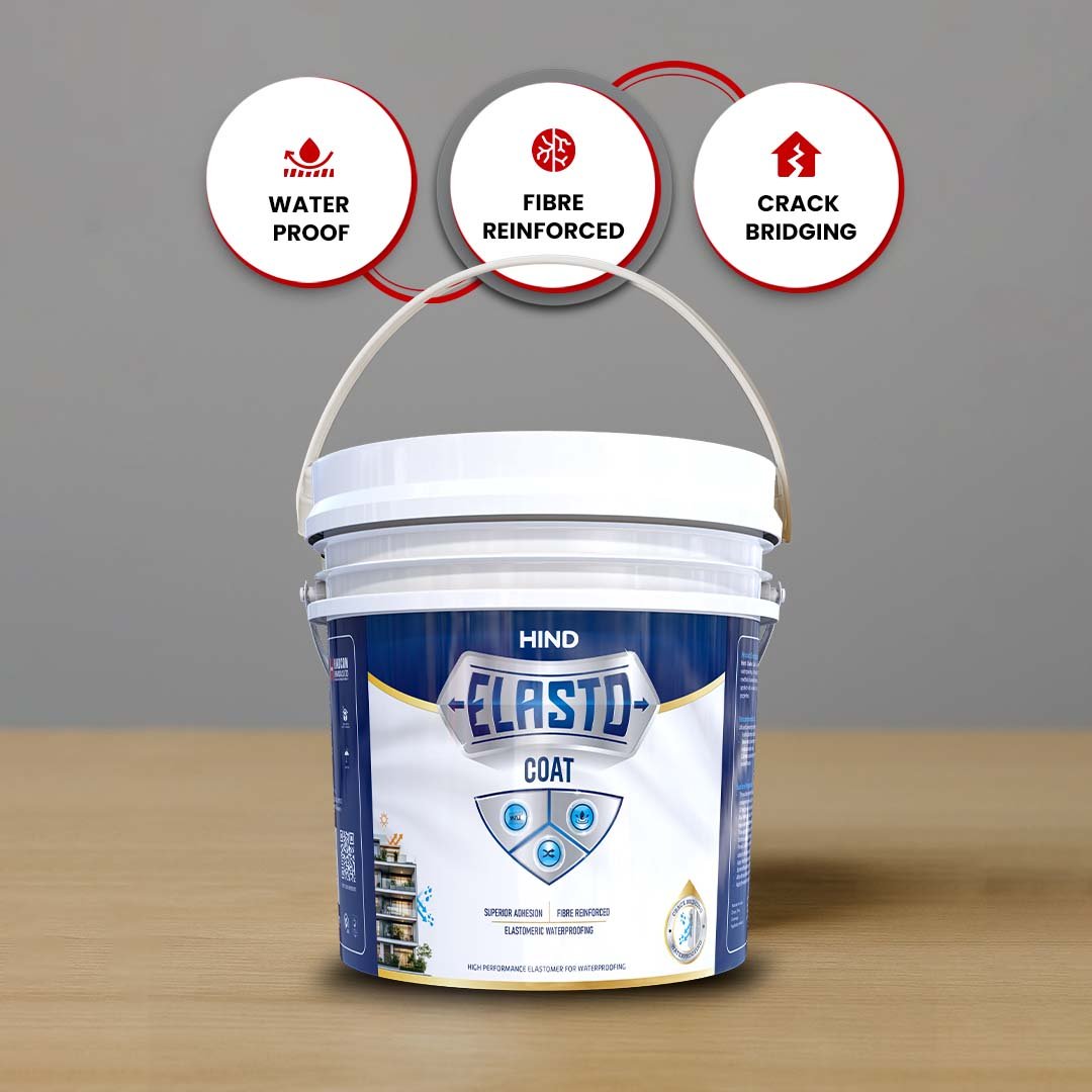 Hind Elasto Coat is a high-performance, flexible waterproofing solution designed to protect your structure from leaks and weather damage. It is an acrylic elastomeric formula that creates a seamless, durable membrane resistant to UV rays, chemicals, and cracking. Easy to apply bd long-lasting, it keeps roofs, basements, and wet areas safe, secure, and worry-free for years.